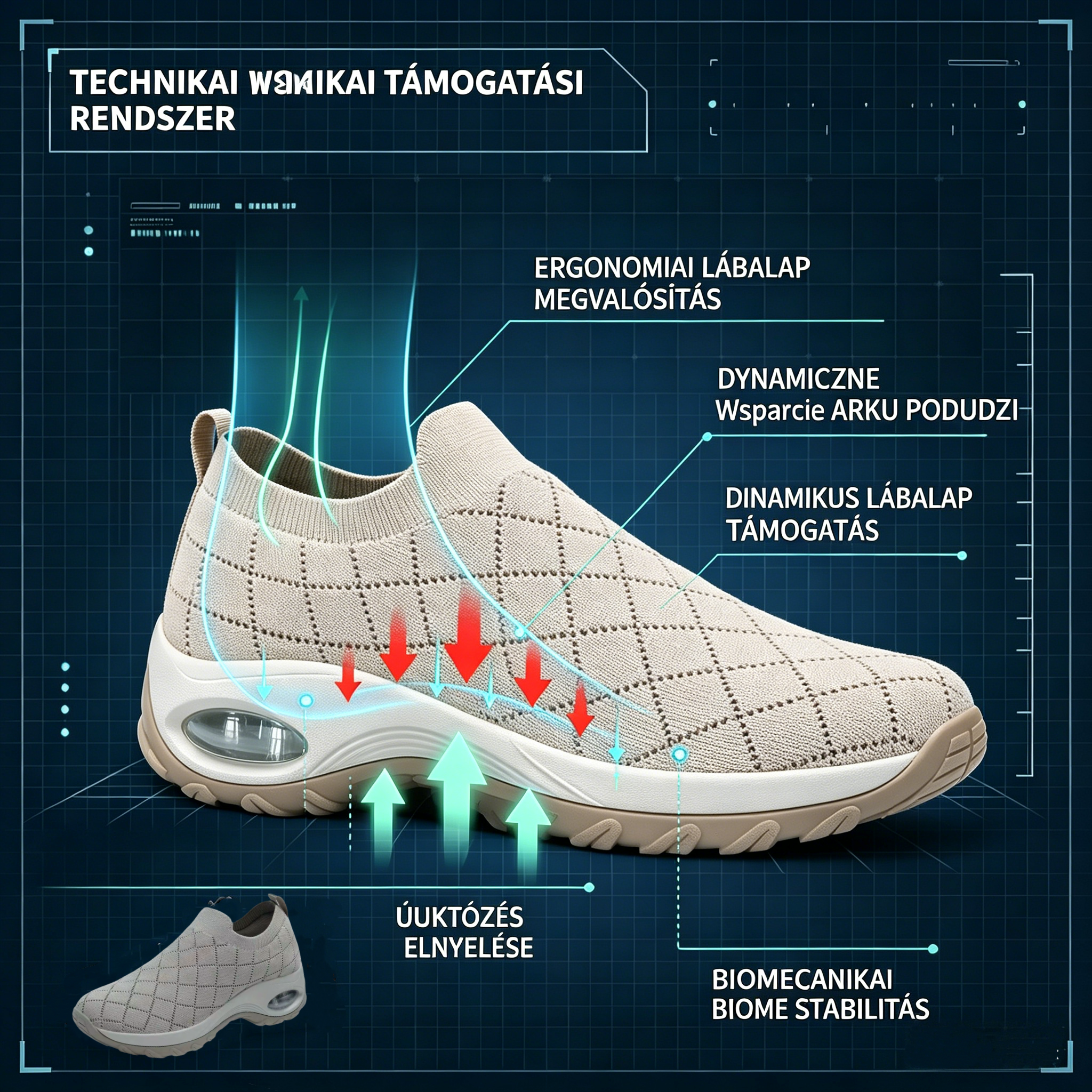 A titok a párnázott talpukban rejlik, amelyek a láb teljes hosszában végigfutnak, és nemcsak a sarkat, hanem az egész lábat megtámasztják. Ez tökéletesen ötvözi a professzionális ortopédiai korrekciót a maximális kényelemmel, biztosítva a stabil és magabiztos járást. Sok magyar felhasználó tapasztalta már a fájdalomcsillapítást és a mindennapi járáskomfort jelentős javulását!