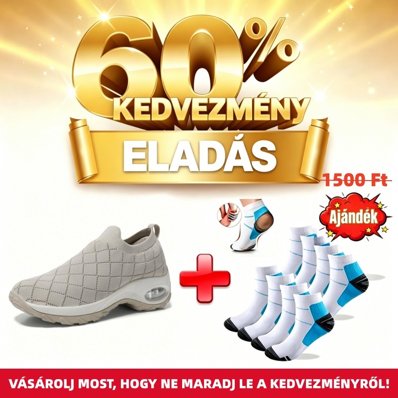 🔥Minden termék 60% kedvezménnyel kapható! A ma betérő vásárlók egy pár ingyenes, kiváló minőségű ortopédiai zoknit is kapnak, 1500 ft értékben.